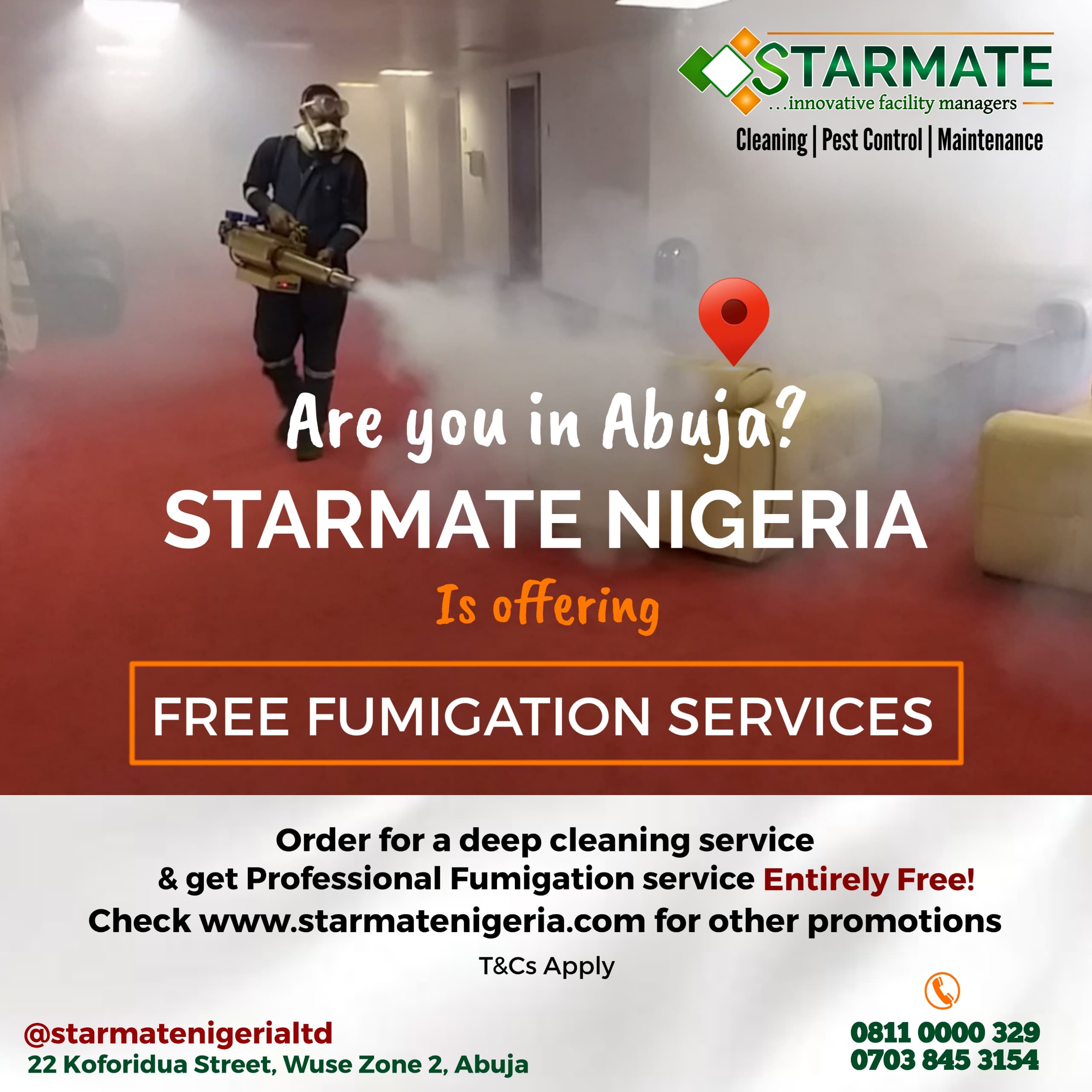At Starmate Nigeria Ltd, we offer professional, fast, and affordable fumigation services across Abuja. Our reputation as the best fumigation company comes from years of experience, certified technicians, and safe, effective treatments that deliver lasting results.